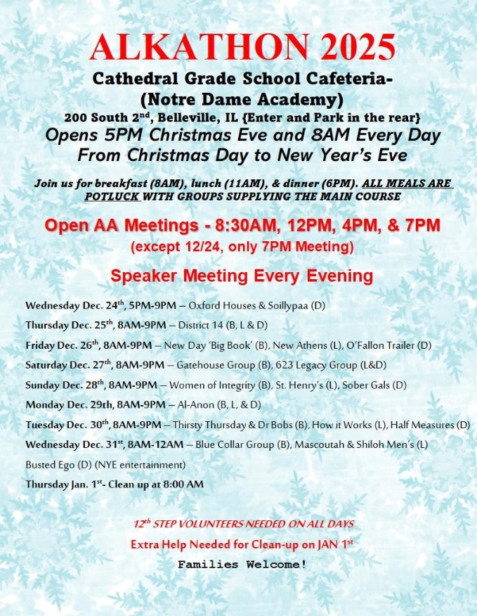 Each meeting is facilitated by experienced individuals in recovery who understand the unique challenges of the holiday season. In addition to the structured meetings, our Alkathon offers informal opportunities for socializing and building connections. Whether you’re a newcomer or a seasoned participant, you’ll find a supportive community ready to embrace you with open arms.